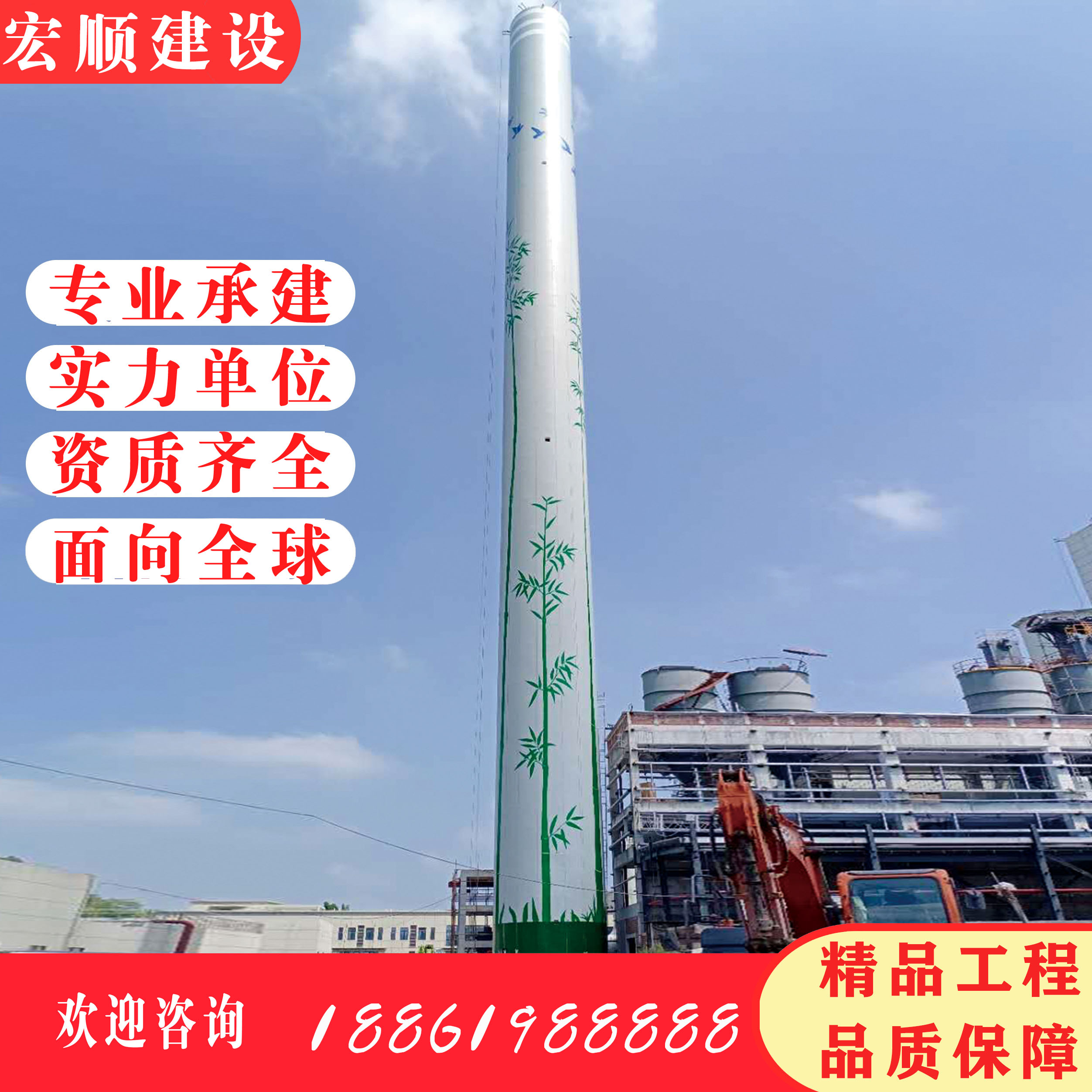 因為煙囪有100米高,施工的非常特殊性,我們這次是使用電動吊籃作為垂直運輸和施工主要工具。
